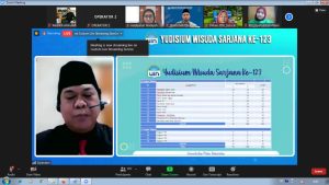 Acara yang diikuti 254 lulusan Strata Satu (S1) dan Strata Dua (S2) itu dihadiri Dekan FITK Dr. Sururin M.Ag., Wakil Dekan Bidang Akademik (Wadek I) Dr. Kadir, M.Pd., Wakil Dekan Bidang Administrasi Umum (Wadek II) Dr. Abdul Muin, M.Pd., Wakil Dekan Bidang Kemahasiswaan, Alumni, dan Kerja Sama (Wadek III) Dr. Khalimi, M.Ag., sejumlah Kaprodi dan Sekprodi, serta dosen FITK yang sebagian besar turut bergabung dari kediamannya masing-masing.