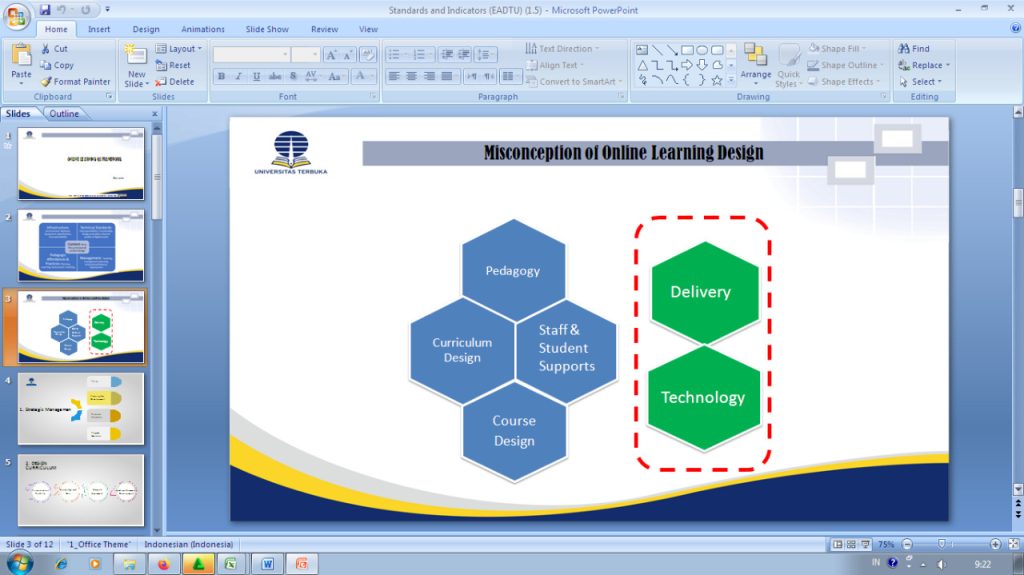 “Online learning didorong oleh adanya akses fleksibilitas. Fleksibel itu mahasiswa harus bisa mengakses dari mana pun dan kapan pun dan fleksibel dengan learning desainnya,” terang Kapus Riset dan Inovasi Pendidikan Terbuka dan Jarak Jauh Universitas Terbuka itu.