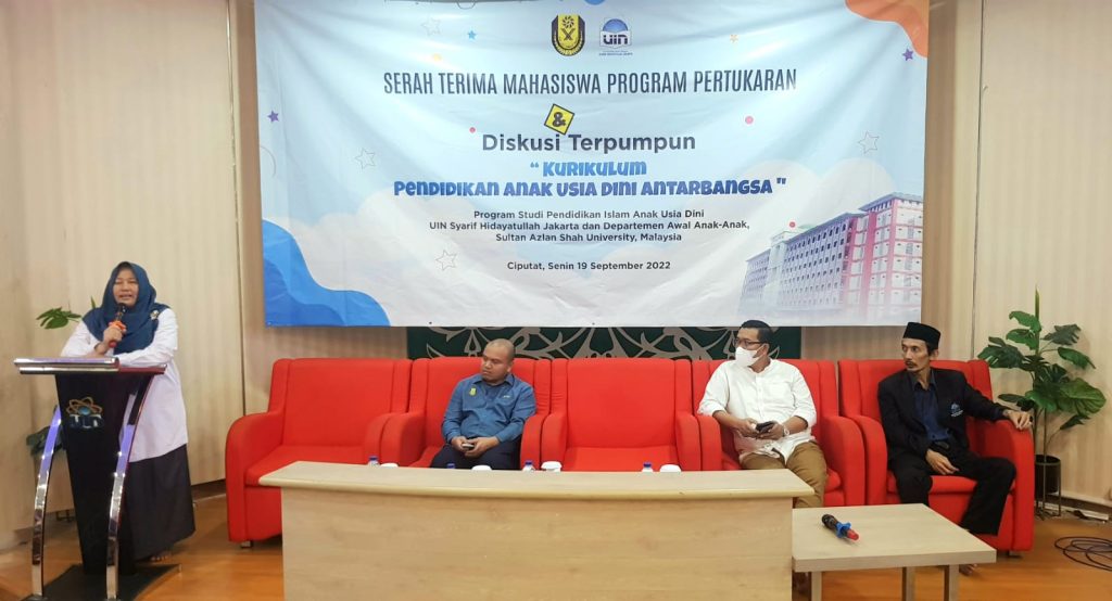 Selain penyambutan, acara tersebut juga diselenggarakan Focus Group Discussion (FGD) dengan tema "Kurikulum Pendidikan Anak Usia Dini Antarbangsa". Acara itu digelar pada Senin, (19/9/2022) di Teater Profesor Mahmud Yunus lantai 2 fakultas, gedung FITK UIN Jakarta, Jl. Ir. H. Juanda No. 95 Ciputat, Tangerang Selatan.