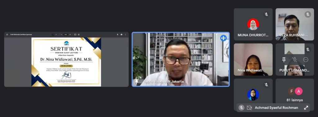 Dengan demikian, perkuliahan khusus yang mengundang Dr. Nina Widiwati, S.Pd, M.Si, seorang pakar fisika nuklir dari Badan Riset dan Inovasi Nasional (BRIN), telah berhasil terselenggara dengan sukses. Semoga perkuliahan khsusus ini sebagai langkah awal yang memberi dorongan bagi mahasiswa/i untuk menggali potensi mereka dalam meneliti karier di masa depan. (Alisa Nurhidayah)