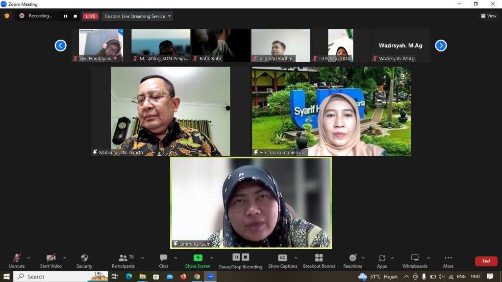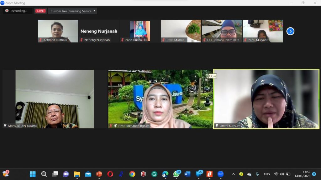 BERITA FITK Online- Diskusi Dosen Seri 4 pada tanggal 14 Juni 2023 ini mengusung tema Understanding Indonesian Indigenous Leadership in Higher Education: An Exploration Study on Islamic and Hindu Based University yang diambil dari ide riset pemateri yaitu Ibu Ummi Kultsum, Ph.D. yang juga sebagai Kaprodi Pendidikan Bahasa Inggris FITK UIN Syarif Hidayatullah Jakarta. Materi yang berkenaan dengan leadership tersebut dimoderatori oleh Ibu Dr. Hesti Kusumaningrum, S.Kom, M.Pd. mendapat stimulus yang cukup menarik dari Pembicara Kunci, Bapak Prof. Dr. Ahmad Thib Raya, M.A. Beliau sebagai salah seorang dosen senior yang telah berpengalaman menduduki jabatan Dekan di FITK UIN Syarif Hidayatullah Periode 2015-2019 telah mengingatkan kembali kepada kita tentang pembentukan karakter pemimpin sepatutnya merujuk pada tauladan Rasulullah saw. dan para sahabat, yakni sinergitas yang tinggi untuk mencapai prestasi yang gemilang. Sinergitas tersebut diilustrasikan oleh beliau layaknya kepala dan anggota tubuh lainnya yang masing-masing memiliki peran berbeda untuk menghasilkan suatu pemikiran atau ide dari isi kepala yang luar biasa. Prof. Dr. Ahmad Thib Raya juga menambahkan karakter seorang pemimpin hendaknya meneladani sifat Rasulullah saw. yang menonjol yaitu shiddiq, amanah, tabligh, dan fathanah.