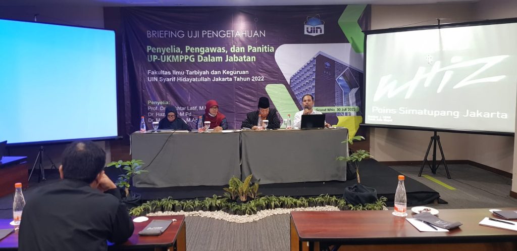 Grand Whiz Hotel, Jakarta Selatan, BERITA FITK Online– Sehari jelang pelaksanaan Uji Pengetahuan Mahasiswa PPG Dalam Jabatan 2022 Batch 1, LPTK UIN Jakarta bersama penyelia menggelar pembekalan bagi panitia dan pengawas. Acara tersebut diselenggarakan di Grand Whiz Hotel, Poins Simatupang, Jakarta Selatan, pada Sabtu, (30/7/2022).